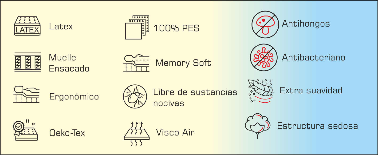 - Doble acolchamiento Viscolástico y Visco Air.