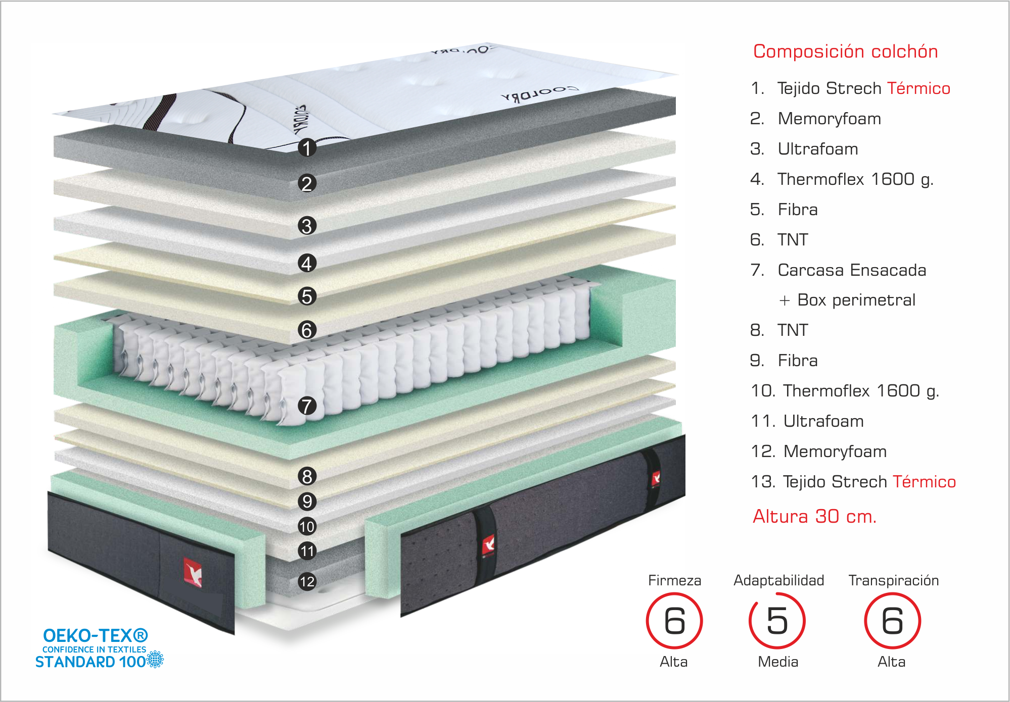 Tratamientos: Sin sustancias nocivas. Certificado Öko-Tex standar 100. Tejidos procesados con barrera higienizada Antiácaros y Bacterias.