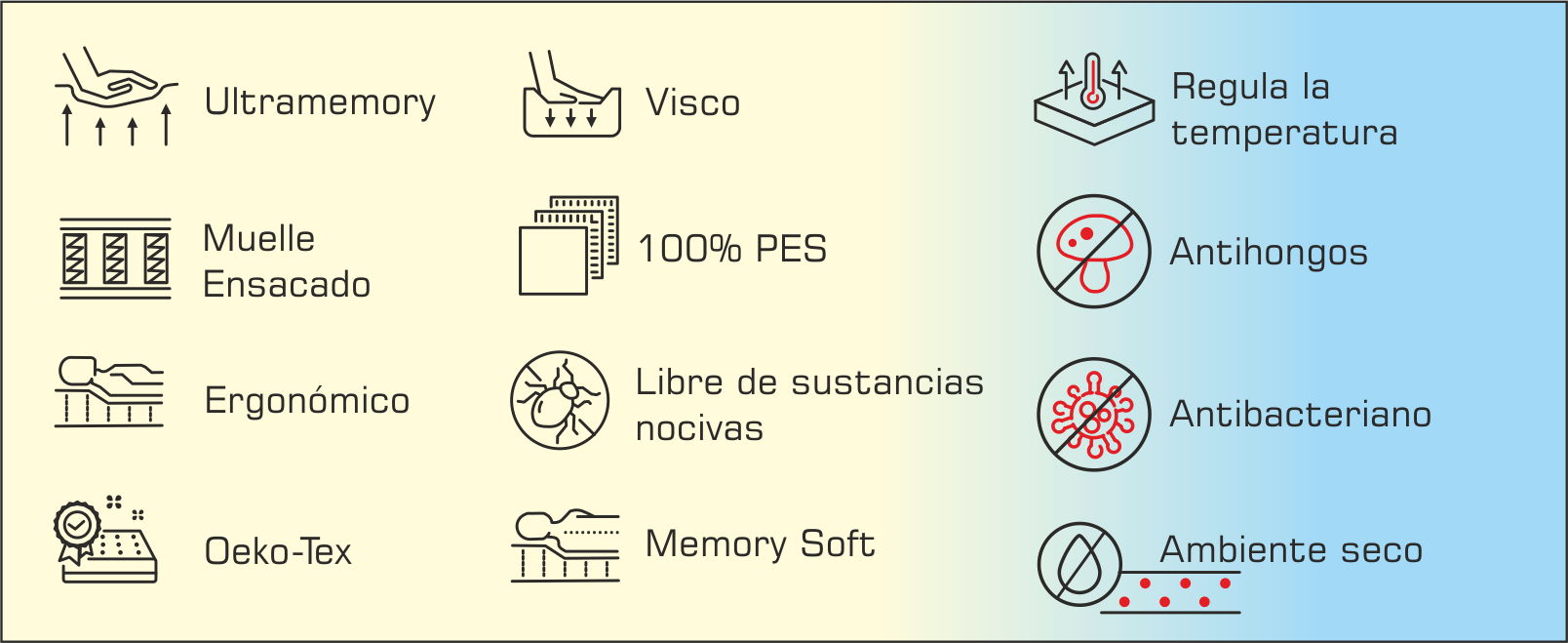 • Antiestático: Inhibe el crecimiento de ácaros y bacterias.
