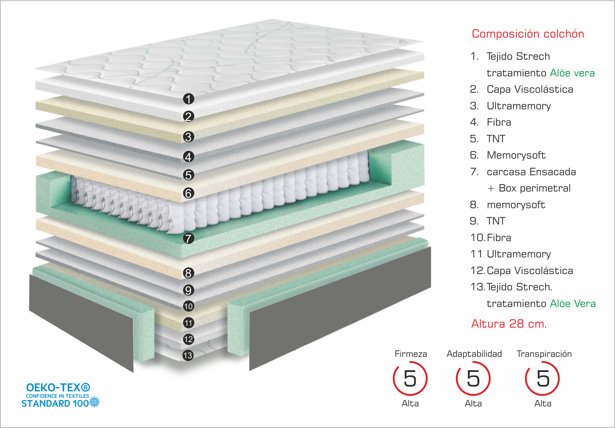 Tratamientos: Sin sustancias nocivas. Certificado Öko-Tex standar 100. Tejidos procesados con barrera higienizada Antiácaros y Bacterias.
